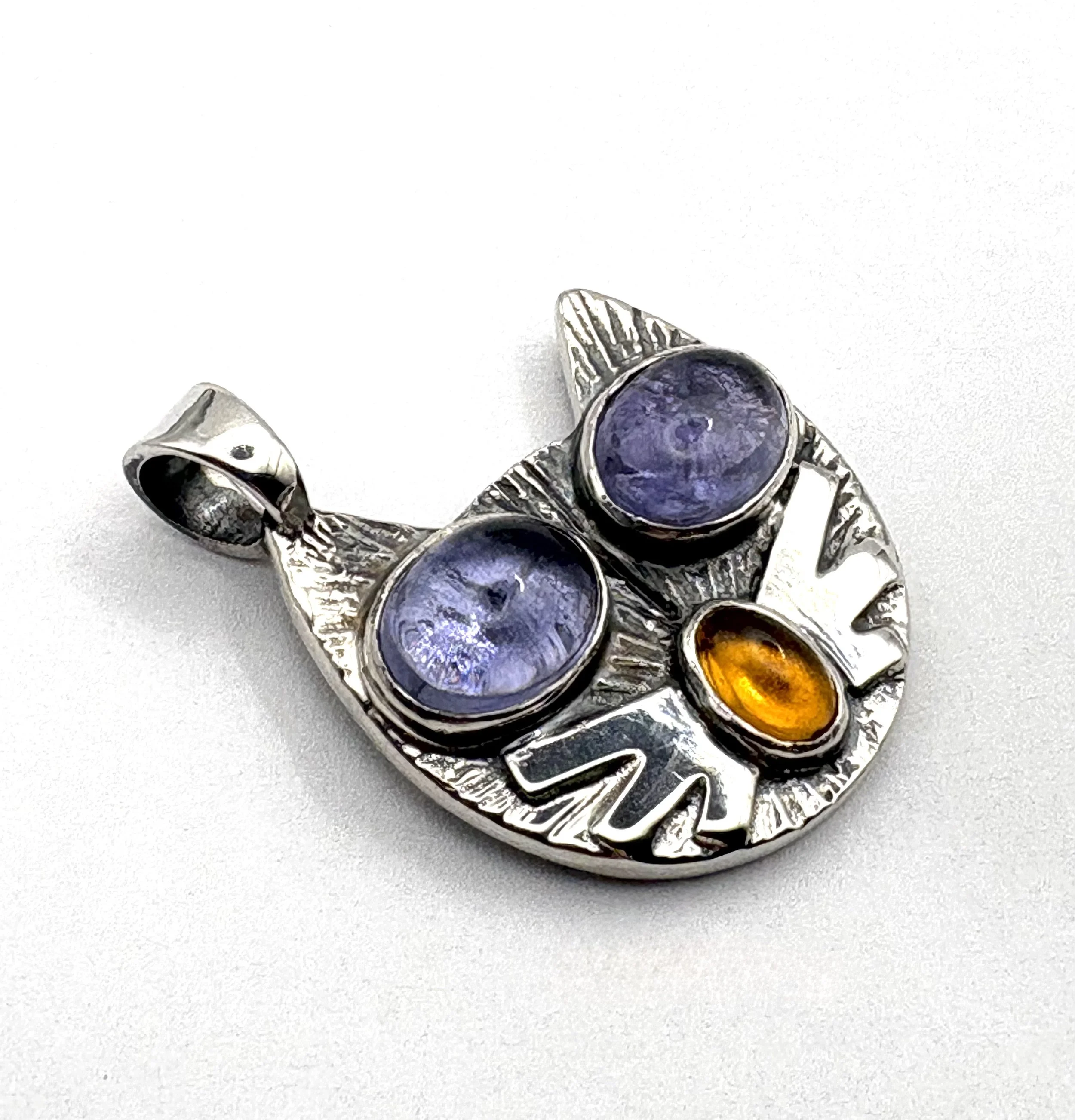My jewelry muse is Princess Isabella, a feral cat who wandered up to our back door and basically took over our lives. Isabella inspired my first cat, and once I made one cat I couldn’t stop. For most of my life I have been a professional opera singer, traveling the world singing beautiful music. Being in the theatre, I have always appreciated hand crafted, unique and dramatic design. I grew up surrounded by beauty- my dad was an artist and my mom an interior designer.