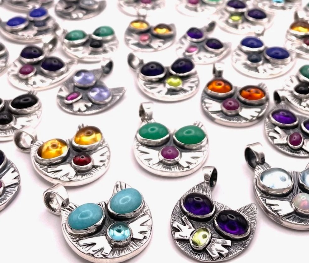 Collecting modern, vintage and estate jewelry my whole life, I have designed and made these bejeweled cats to compliment and be worn with what you already own. Forged in sterling silver, gold and precious gemstones. Pair a couple of cat tags with your favorite earrings and chains. Layer them up or wear alone, no rules. Make them your own style, a celebration of your uniqueness. A homage to your love of felines!